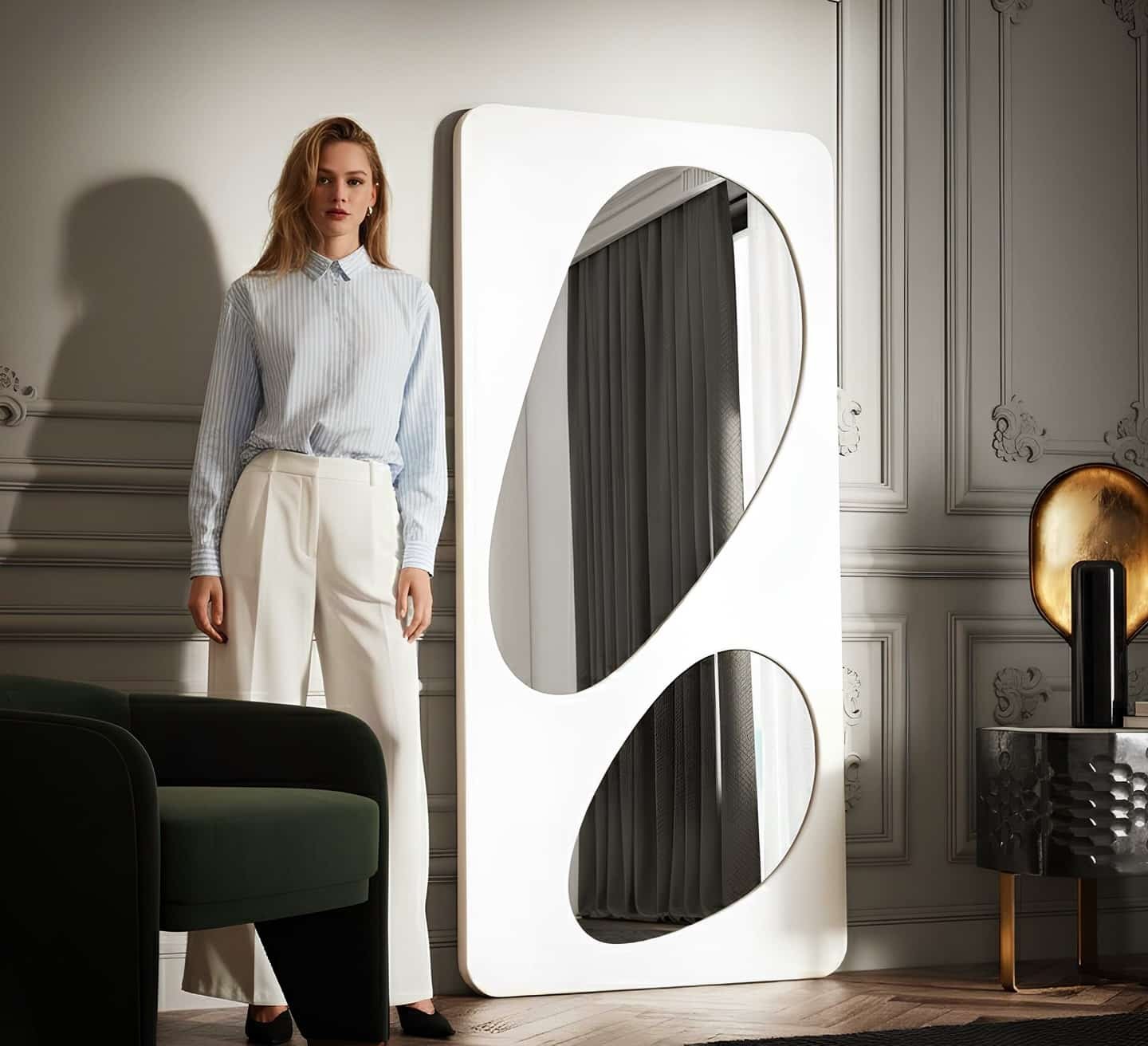 A well-chosen luxury mirror instantly elevates a room, acting as a focal point that draws the eye and anchors the space.